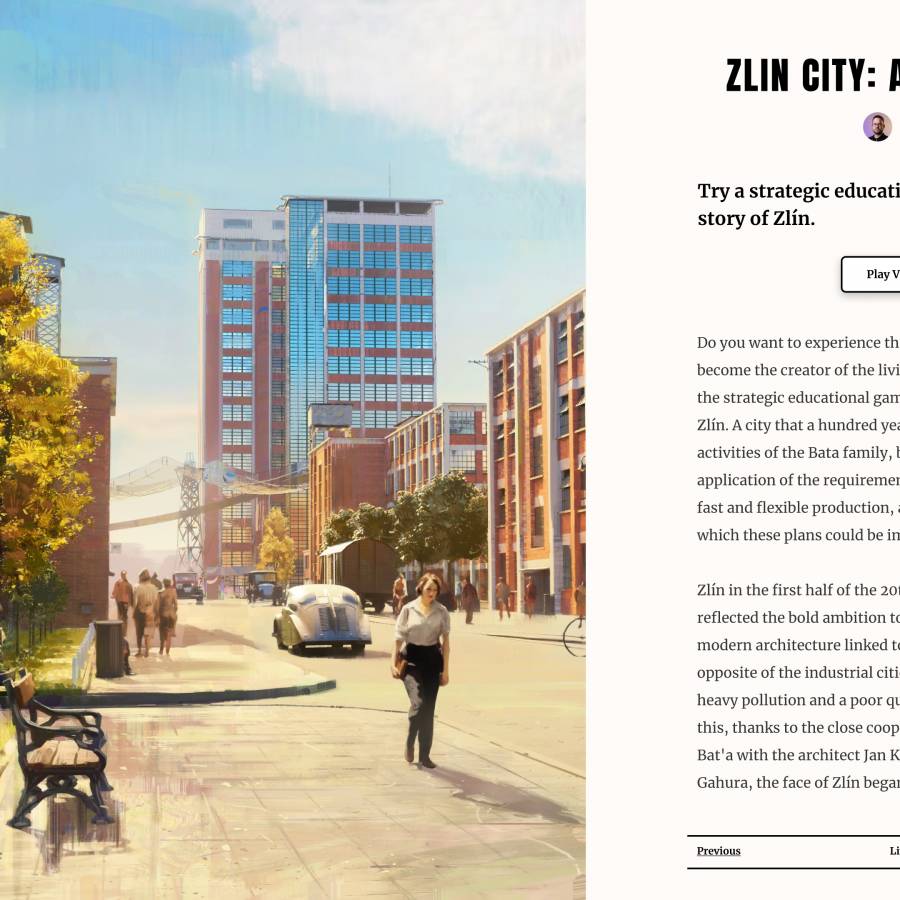 The game encyclopedia tells the story of great ideas, modern architecture, and historical figures. Listen to the sound recordings made by the actors from Zlín as they play.